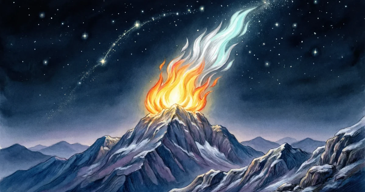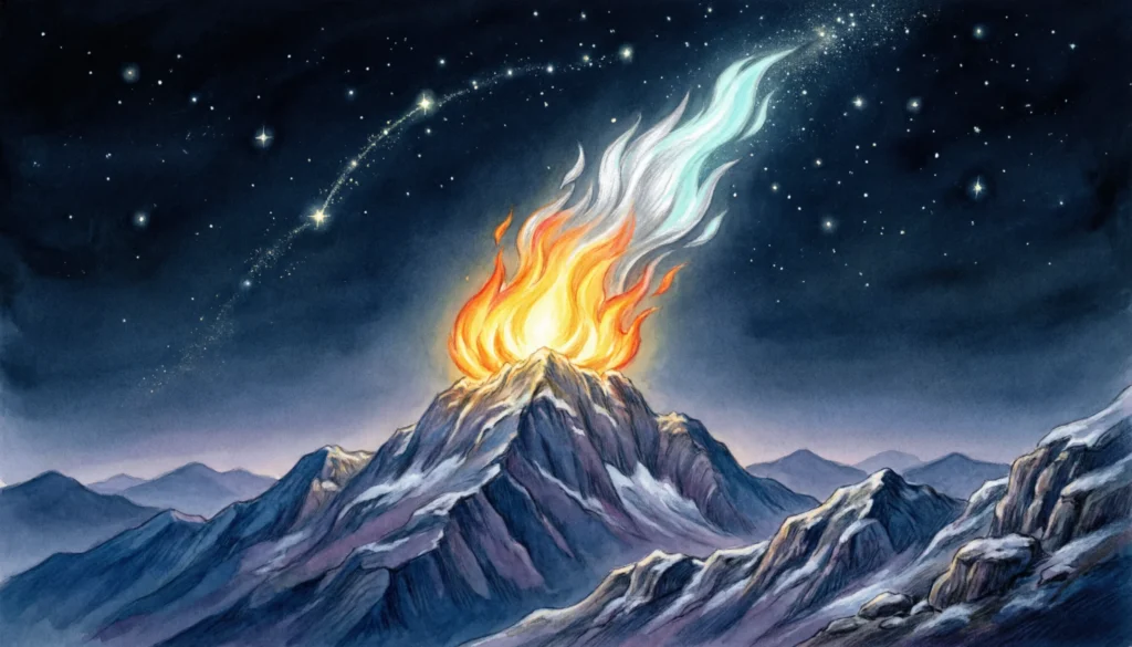 Metaphor of ambition shown as a rising flame reaching toward stars