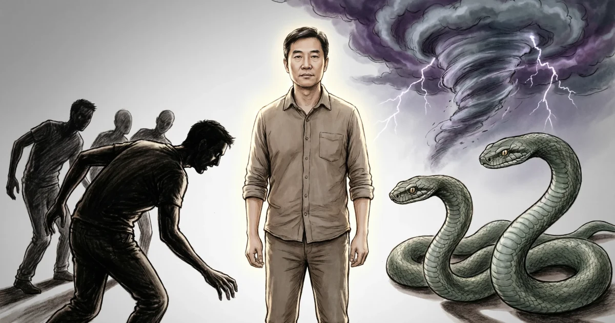 metaphors for enemies illustrated as snake shadow and storm