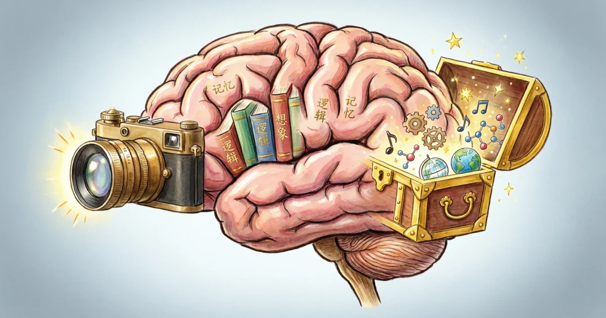 metaphors for memory visual showing brain as library camera and treasure chest