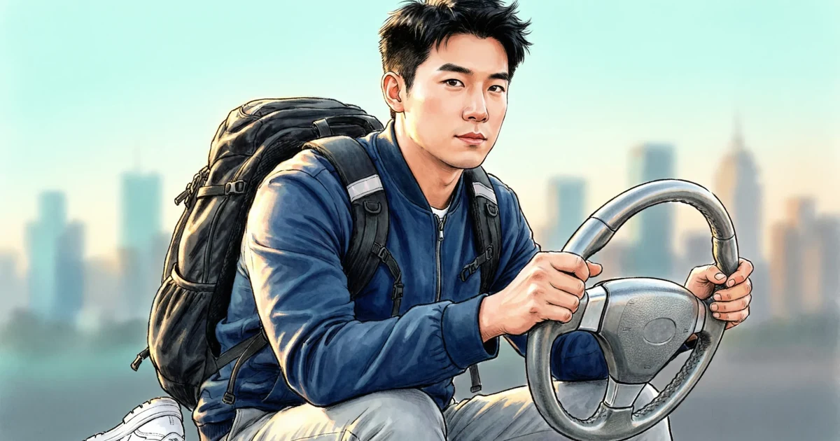 visual metaphor showing responsibility as a heavy backpack and steering wheel