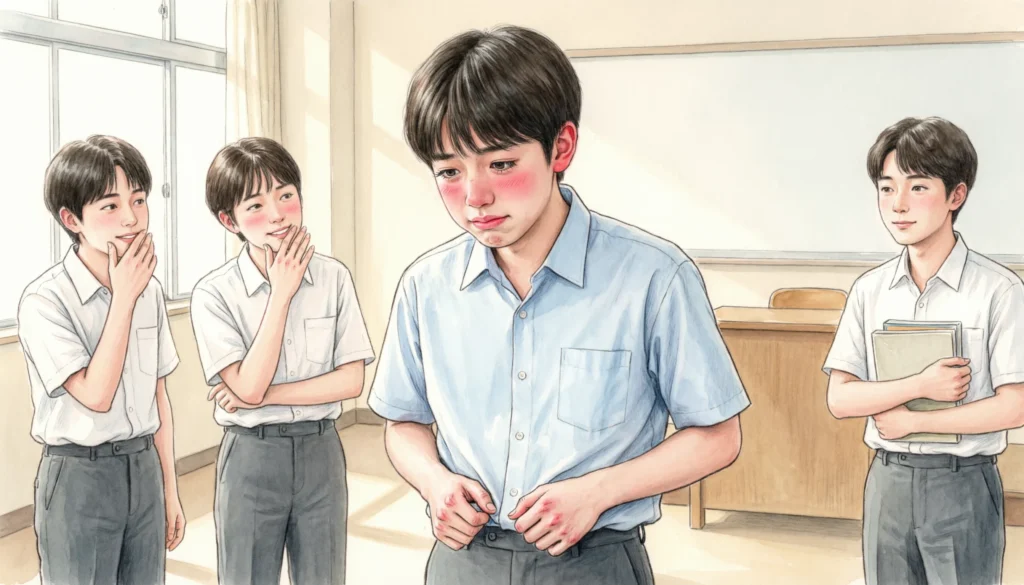 Example: My cheeks turned red with shame when the teacher read my message aloud.