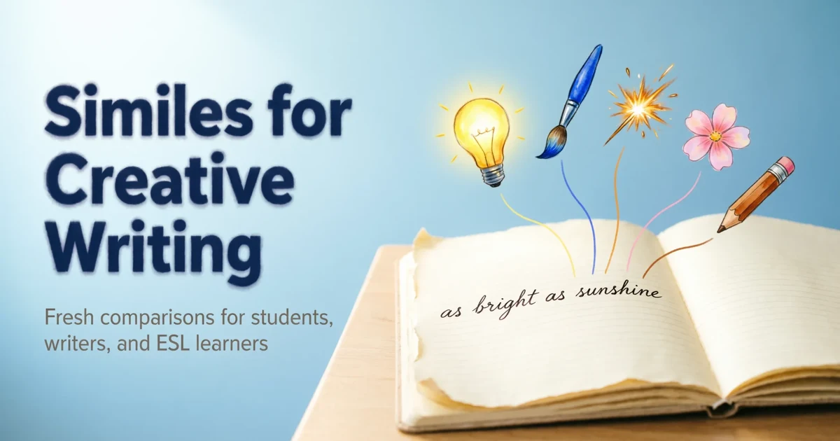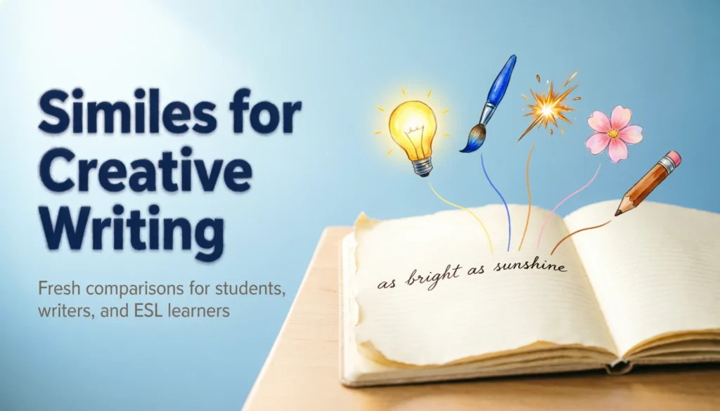 Similes for creative writing help you turn plain sentences into clear, memorable images. They allow students, writers, and ESL learners to describe imagination, ideas, art, and problem solving with more feeling. The best similes use familiar images such as light, fire, rivers, flowers, music, and color. They should fit the tone of your writing and make your meaning easier to understand. Use them carefully, not too often. One strong simile can make a sentence shine. When you choose the right comparison, your writing feels more natural, expressive, and enjoyable to read.