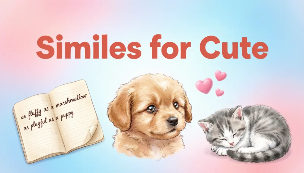 Similes for cute compare someone or something adorable to another sweet, soft, tiny, or charming thing. They make writing more visual and expressive. Students, writers, and ESL learners can use them in stories, essays, descriptions, conversations, and creative writing.
