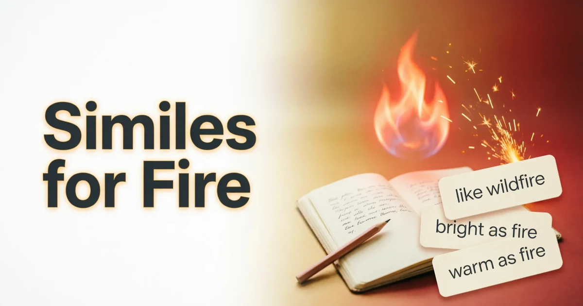 Similes for fire help writers and speakers describe heat, anger, passion, speed, brightness, danger, comfort, and change. A strong fire simile can turn a plain sentence into a vivid image. Students and ESL learners should start with simple phrases like hot as fire, bright as fire, and spread like wildfire before trying poetic comparisons such as like embers in the dark or like a torch in a storm. The best simile always fits the mood. Use fire carefully, and your writing will feel warmer, sharper, and more alive.
